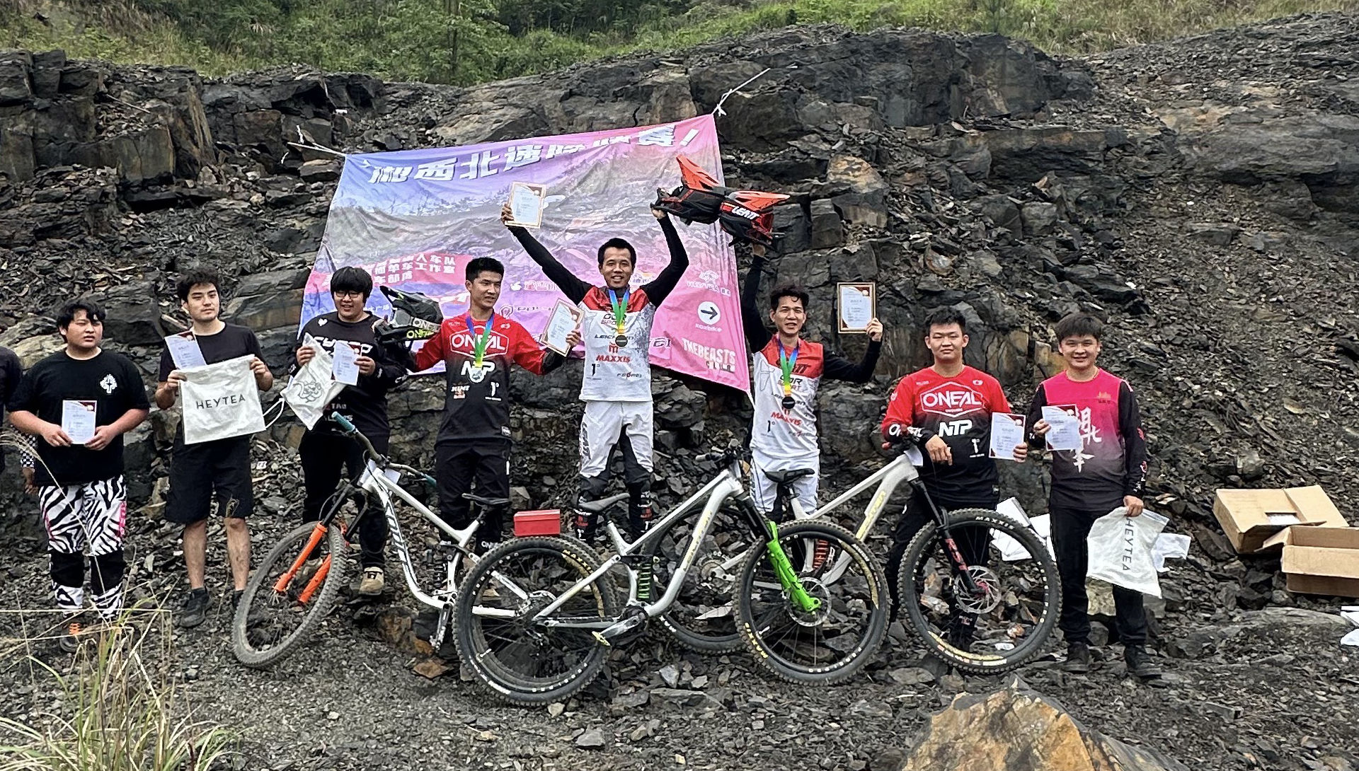 Riding the LEICHTEN Azure Drache bike, Rong Kang won first place. Tang Mengqi (KK) got third. Both chose the Azure Drache for its 170mm suspension and stable frame design that worked well on technical sections.